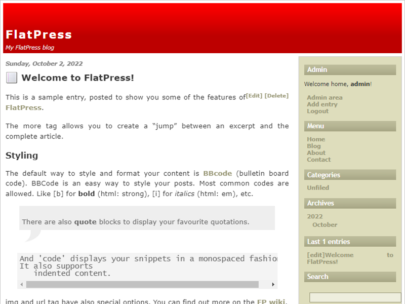 This is a sample entry, posted to show you some of the features of FlatPress.